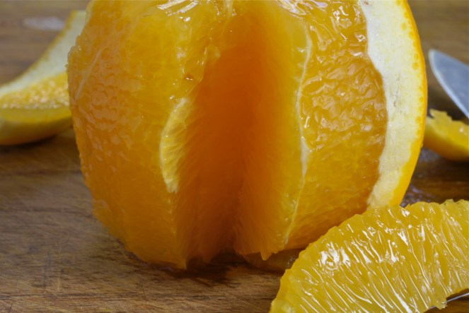 Hold the orange over a small bowl while segmenting, to collect any juice that drips from the orange. I like to use a very sharp paring knife when segmenting the orange, so that I end up with neat slices.