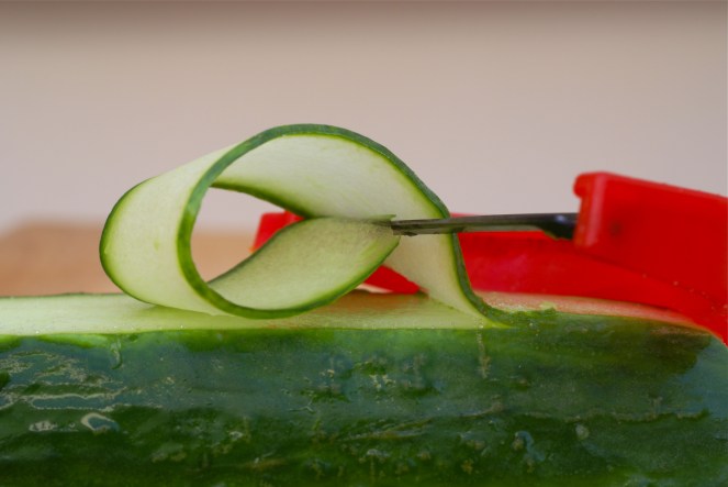 The swivel peeler is handy when preparing cucumber ribbons for this refreshing salad. The citrus dressing is prepared in advance so the flavours infuse together. Before serving, shave the cucumber into ribbons and gently toss them together with the citrus dressing. When making this salad I like to buy the English cucumbers as they contain fewer seeds and the cucumber ribbons are firmer. Serve this salad with a nice piece of grilled salmon for a delicious healthy meal.