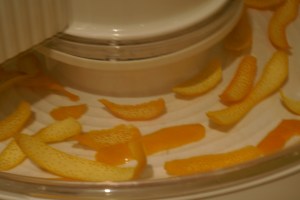 Before juicing the citrus fruit, pare the rind using the swivel vegetable peeler. I have a small dehydrator (not a necessity) which I use for drying citrus rinds, but you can use an oven.