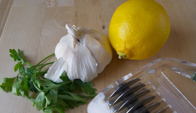 Gremolata is a combination of lemon zest, garlic, parsley, and olive oil, preparation only takes a couple of minutes and is best made close to serving time. Traditionally an addition to Osso Bucco (braised veal shanks), Gremolata is also great as a garnish on grilled meats and seafood.