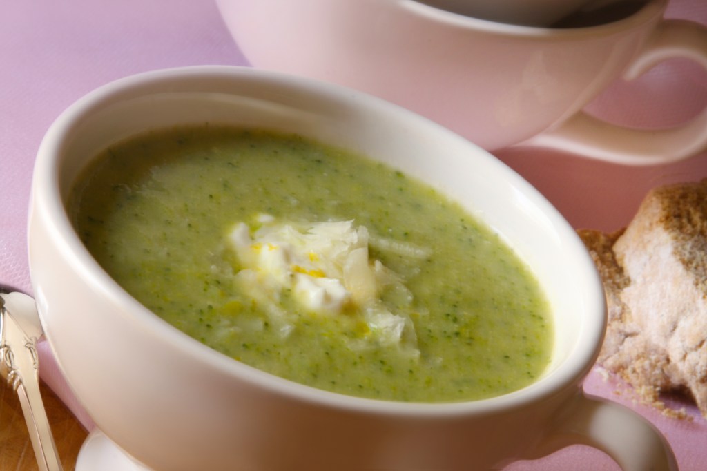 Leek and Broccoli Soup with Lemon Creme Fraiche