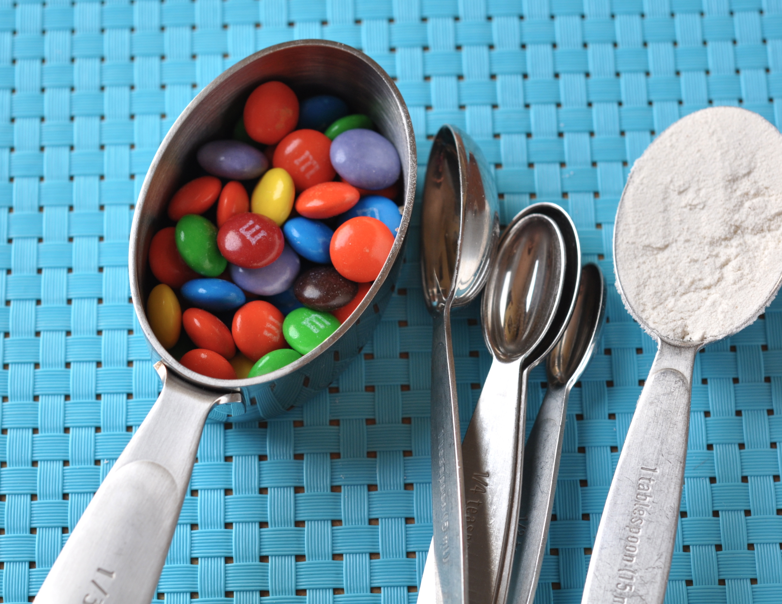 • 1/4 cup (54g) mixture of M&M’s and Smarties