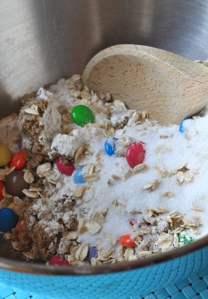 Place the contents of the jar of cookie mix into a mixing bowl and with a wooden spoon thoroughly mix all the ingredients together.