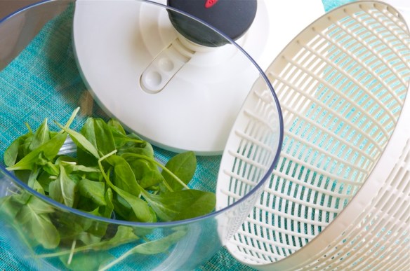Using endless pieces of paper kitchen roll to dry each salad leaf seems such a waste and takes time, a quick couple of spins in a salad spinner and your done! Great for storing washed salad leaves in when entertaining… ready for those last minutes needed to assemble and dress a salad quickly, especially when using delicate leaves like baby spinach!