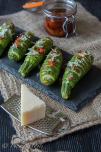 Hasselback Baby Courgettes with Dried Tomatoes and Parmesan Cheese