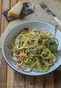 Spiralized Courgettes with Whole-wheat Spaghetti and Coriander Pistachio Pesto