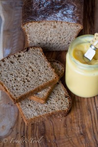 Note: Although the author of the recipe mentioned using a 2 liter loaf tin, I used the same sized tin for the smaller loaf, letting it rise to almost level with the top of the tin and it turned out perfect each time. As of yet, I haven’t tried making a larger loaf with the same 2 liter tin.
