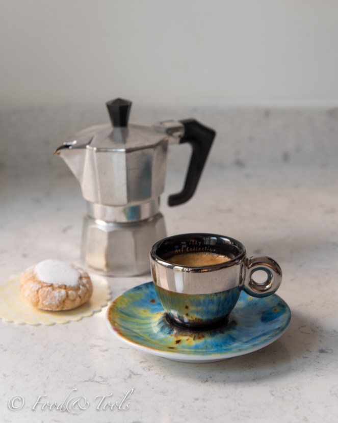 The pretty wrapped panforte with candied fruits, almonds and the ricciarelli (almond biscuit seen above with coffee) were a few sweet treats brought back from a recent trip. I had all the ricciarelli to myself as others in the house are not fans of the marzipan flavor… lucky me.