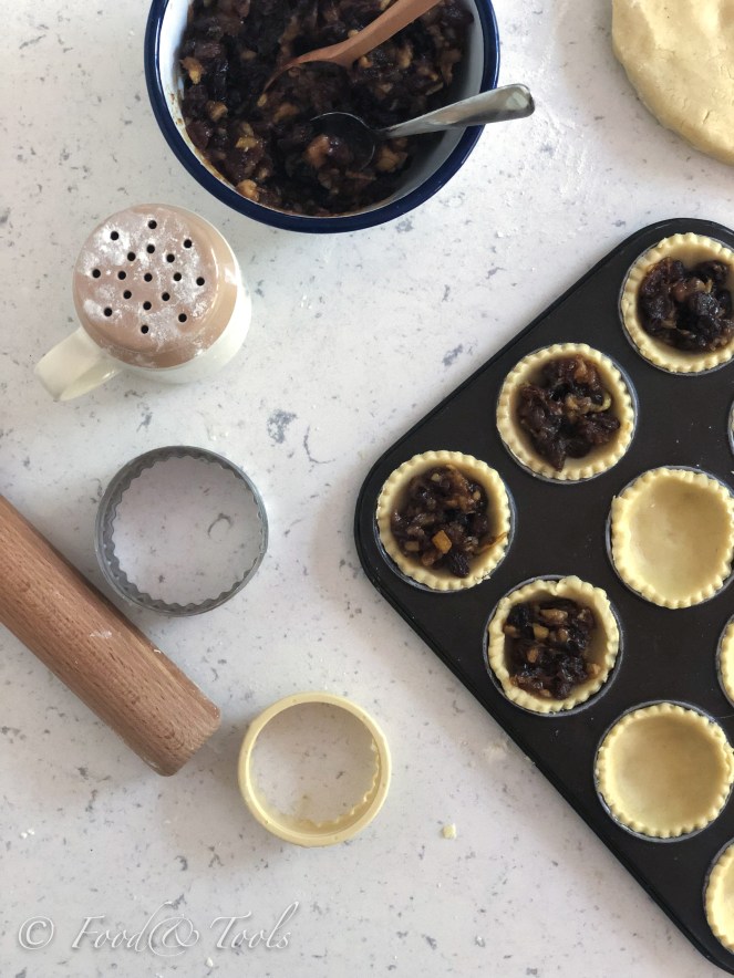 Made some sweet mince pie filling with dried fruit that needed using. I know we have months before Christmas but decided to break with tradition… nobody complained about eating mince pies mid-year. And, some of my pastry essentials needed a good kitchen workout.