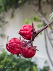 These vivid ripe rosella fruit were in my garden back in April, and while I’m not so familiar with fresh rosella, I am familiar with the dried version. Rosella, also known as hibiscus is commonly used in herbal teas, and in Bahrain, Karkade (made with dried rosella leaves) is a popular iced drink with the local community. As this was my first time using fresh rosella, I searched for recipes other than drinks and found that rosella jam was a popular recipe among Australians…so decided to make some.