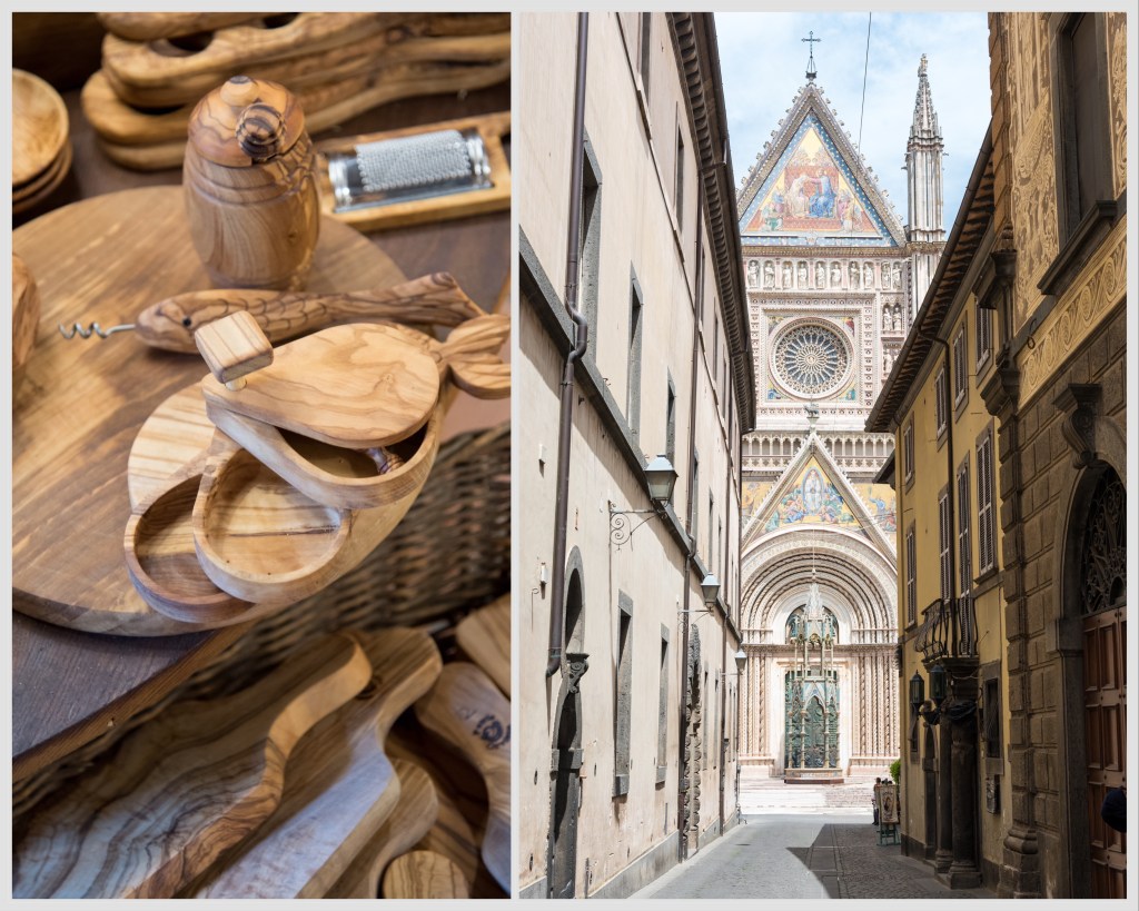 Have you ever bought wooden spoons as souvenirs on your travels? One in particular comes to mind. While browsing, a shop owner noticed me looking curiously at a particular wooden spoon and came over to explain its purpose. He said it was a sauce-testing spoon and when cooking; you take a spoonful of sauce, run it along the groove to the smaller end on the spoon. The hot sauce will have cooled by then and won’t burn your mouth on tasting. And no chance of double dipping either. He was so excited about his crafty invention and so was I! Anytime I use this sauce-tasting spoon, I remember the lovely town of Orvieto and the enthusiasm shared by the artisan wood carver who was so proud of his work.