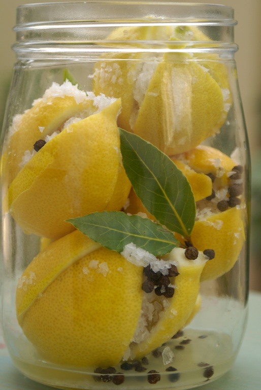 Before satellite TV came to Bahrain my parents would record cookery programs for me and send them by post. Dad was usually in charge of editing but I could always tell when he had nodded off on the job, leaving me to watch cookery programs along with long TV commercials and bits of other programs. And it was in one of those recorded cookery programs I gave preserved lemons another chance… and if you have never tried making them before, it is so worth the effort!